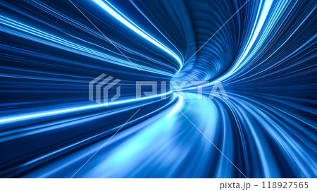 未来的なトンネルに青く輝く光線