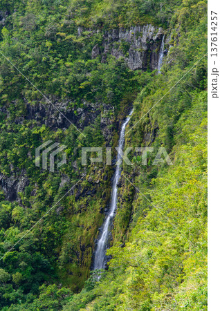 モーリシャスの山にある美しい滝の風景