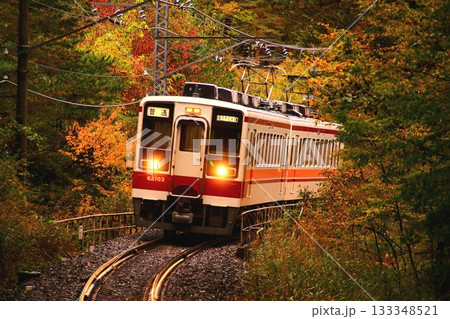 紅葉の秘境駅『男鹿高原』にて… 6050系 電車