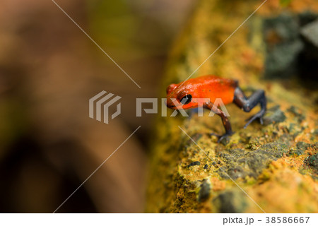 鮮やかな赤色の小さいヤドクガエル