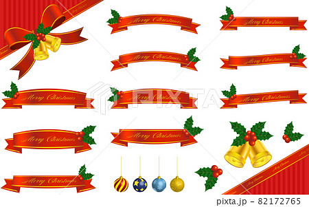 柊つきクリスマス用ラッピングリボン、クリスマスボールとベルのセット