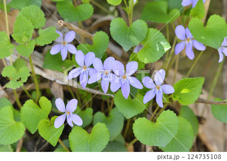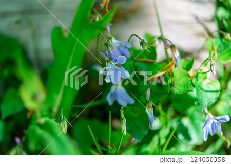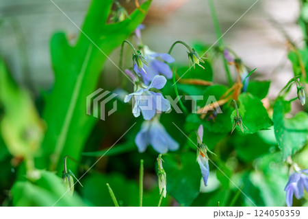 かわいらしい薄紫色のタチツボスミレの花ポートレート(自然光・マクロレンズ接写)