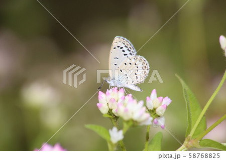ヒメツルソバ(姫蔓蕎麦)を訪れたヤマトシジミ