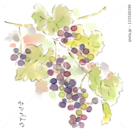 秋の植物、ヤマブドウの水彩画イラスト