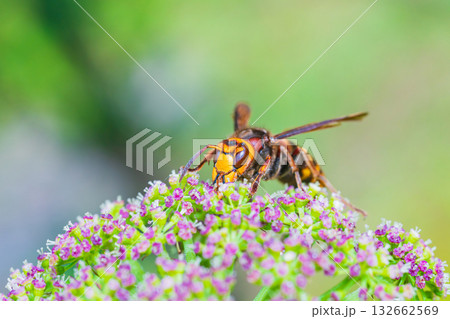 花の蜜に集まるスズメバチ