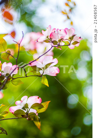 春4月に咲いた満開のピンクのハナミズキの花