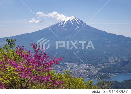 (山梨県)つつじ咲く黒岳展望台から眺める、富士山