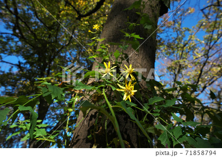 木の上へ上へと茎を伸ばすキノボリギク(木登り菊) 11月撮影