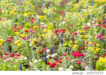 夏の花 花壇 花ロードえにわ花まつり 赤 紫 黄 白