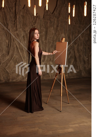 An Elegant Artist Posing in a Dramatic Setting for Creative Inspiration and Ideas