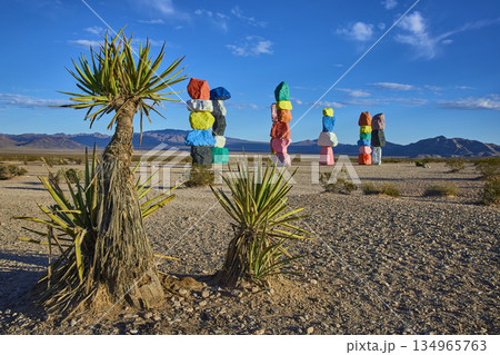 Seven Magic Mountains Colorful Rock Stack Desert Art Yucca Plant Nevada