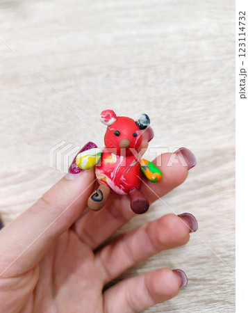 This is a Colorful Handmade Toy Figurine that is shaped like an adorable Bear for kids