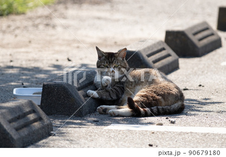 ぬいぐるみで遊ぶ猫 サバトラ猫