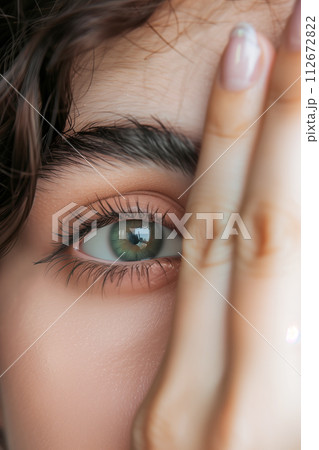 AI-generated content. A closeup portrait of a woman with freckled hair and piercing blue eyes. Her unique features showcase her natural beauty and individuality
