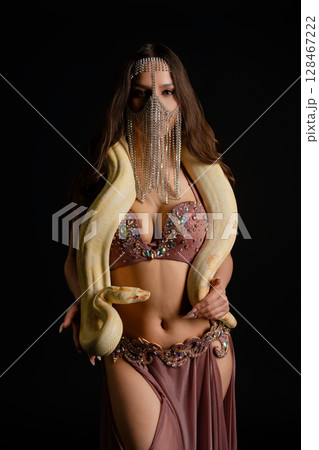 Woman elegantly poses with a snake, exuding beauty and confidence