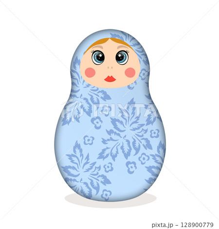 Russian Matryoshka. Traditional Russian folklore dolls with big eyes and lips. Babushka doll with hohloma, traditional painted floral pattern. Hand drawn vector illustration