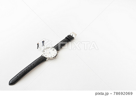 古い本の上に置かれた黒バンドのアンティークの腕時計 ウォッチ