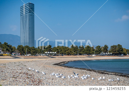 琵琶湖畔に集まるユリカモメの群れ 滋賀県大津市