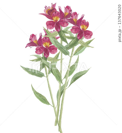 水彩で描いたアルストロメリア 赤色