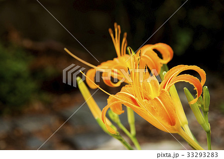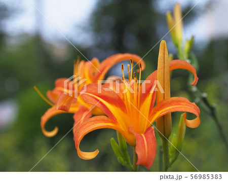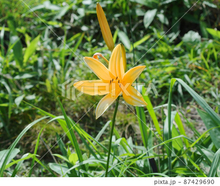 初夏に道端で咲くオレンジの花、ノカンゾウ