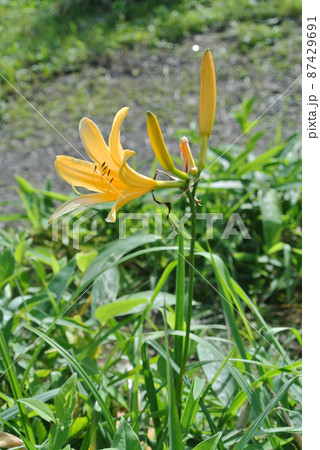 ユウスゲの黄色い花が咲いています。学名はHemerocallis thunbergii