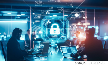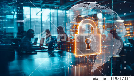 デジタルセキュリティ環境のコンセプト、オフィスのサイバーせキュリティイメージ