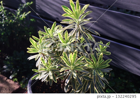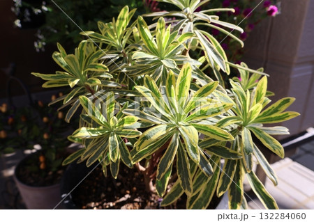 朝陽を浴びるユーフォルビアゴールデンレインボー