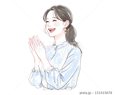 水彩画・手描き風のお笑い・大爆笑する女性のイラスト素材