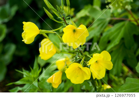 埼玉県川口市の春の荒川河川敷に咲くマツヨイグサの花