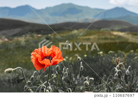 Wild poppies in the mountains of Armenia