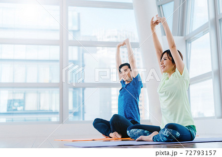 ヨガをする日本人ミドルシニア夫婦