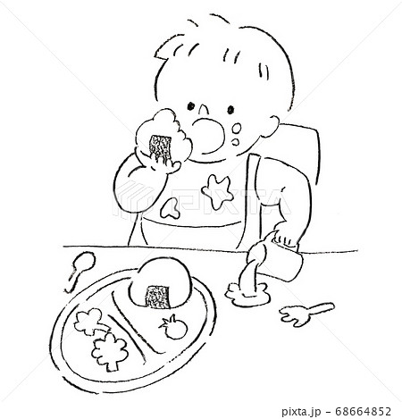 食べこぼしをする子供のペン画イラスト
