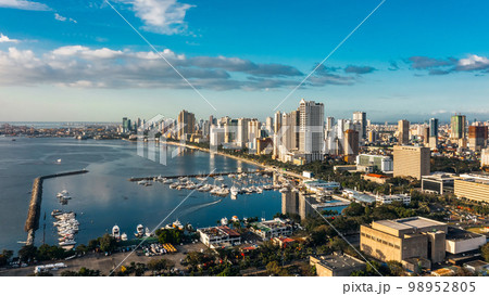 Cityscape of Manila. It is the capital of the Philippines, is a densely populated bayside city on the island of Luzon