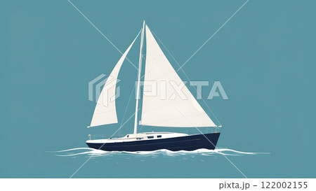 紺碧の大海原に優雅に浮かぶ大型帆船ヨットをリアルに描いたAI生成画像