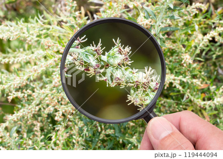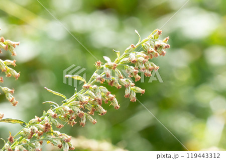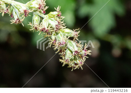 ヨモギの花 クローズアップ(秋の花粉症の原因植物)