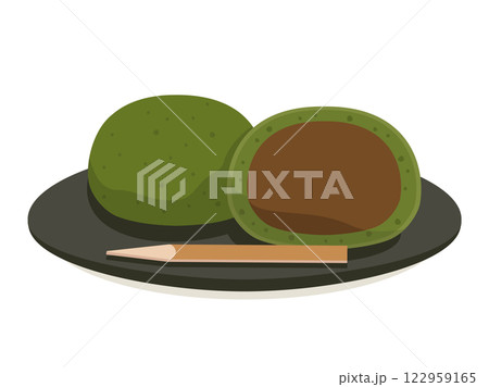 草餅やよもぎ餅をイメージしたイラスト こしあんバージョン