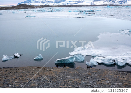 ヨークルスアゥルロゥン氷河湖 浮かぶ氷山と雪景色 アイスランドの絶景