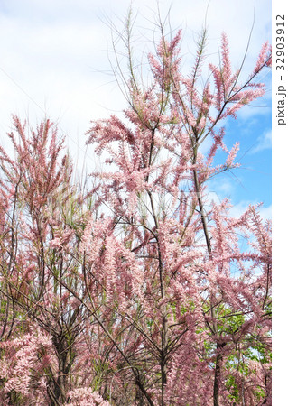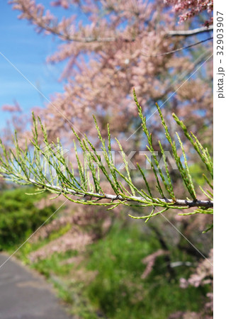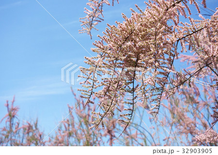 タマリクス・テトランドラ(ヨーロッパギョリュウ)と青空の風景