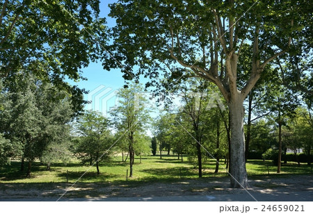 南仏 アヴィニヨン 木漏れ日のプラタナス林 涼しい木陰