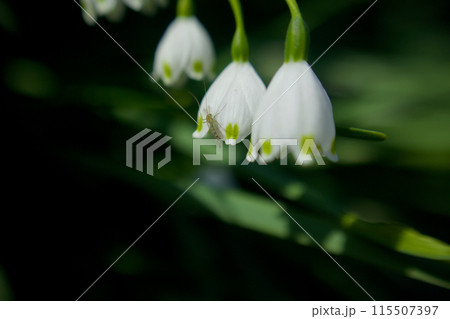 スノーフレーク、別名は鈴蘭水仙。羽休めるセスジユスリカ。花言葉は「純潔」「汚れなき心」