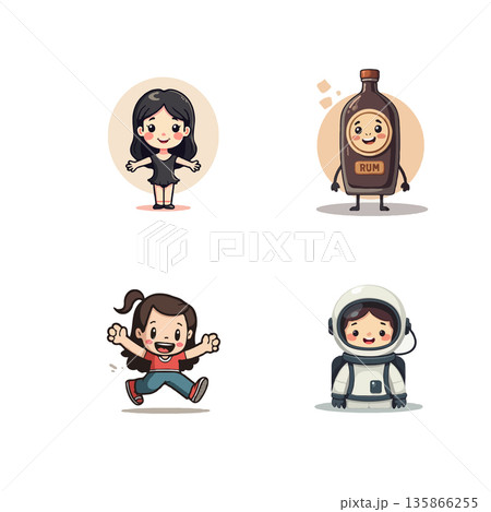 Collection of adorable cartoon icons featuring wheat, water bottle, lion, and a child rolling dough, perfect for various creative projects.