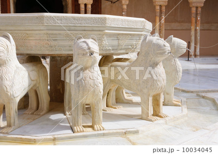 ライオンの中庭、12頭のライオン像が水盤を支えている噴水【スペイン・グラナダ】