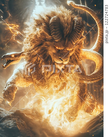 A_chimera_with_a_lions_head_a_goats_body_and_a_snake_tail