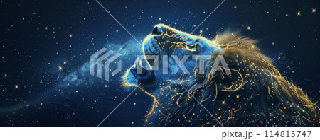 Cosmic depiction of Leo the lion with stars and constellation outlines
