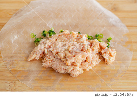ライスペーパーで包んだ餃子の具