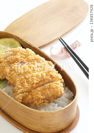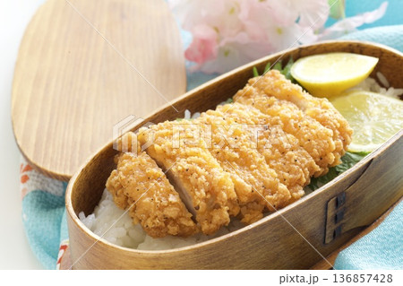 わっぱ弁当に入ったチキンカツ弁当