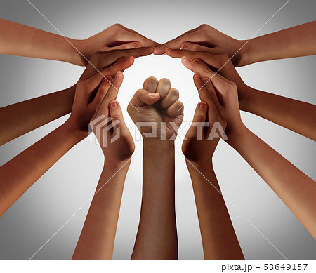 Multinational people demonstrating unity and willingness to stand together against discrimination
