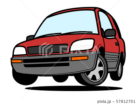 懐かしめ国産ライトクロカン 濃赤色 ジャンプ 自動車イラスト