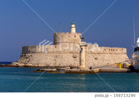 Fort of St Nicholas at sunset in Rhodes, Greece