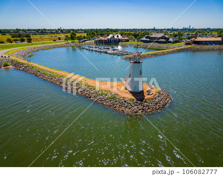 Aerial view of Lake Hefner lighthouse